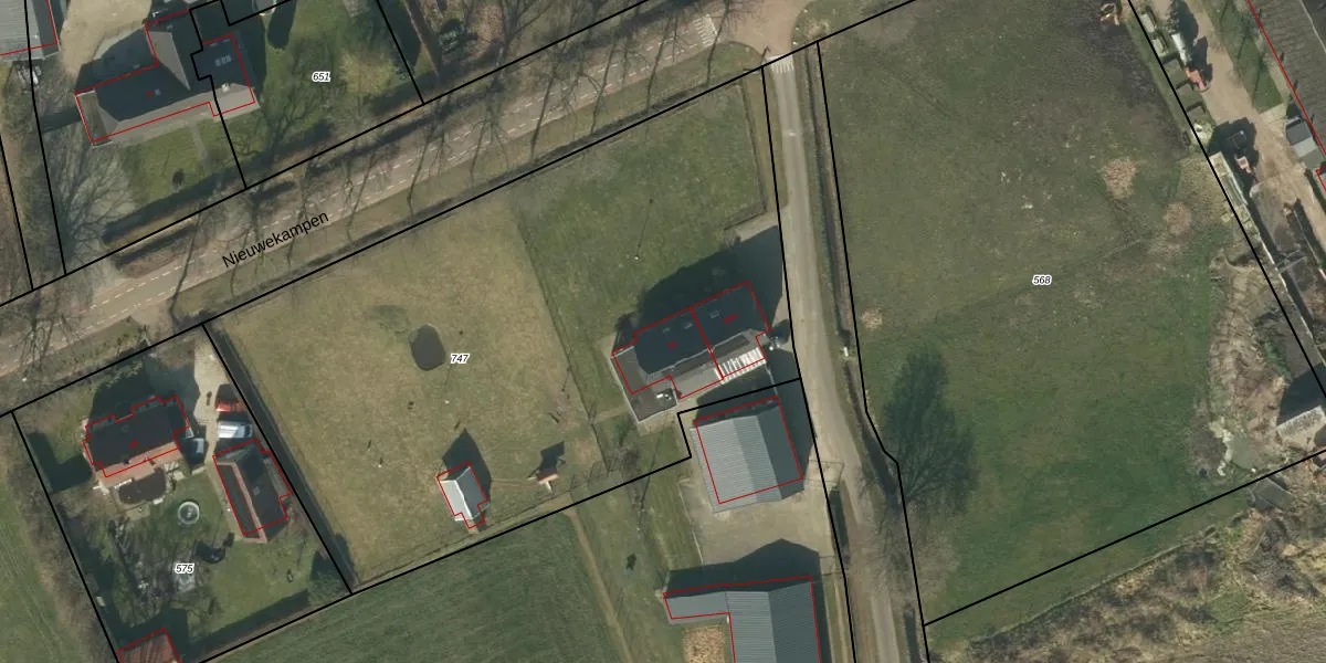 Nieuwekampen 24 is gelegen op kadastraal perceel NLD03E747. Deze kadastrale aanduiding is uniek en wordt gebruikt door het Kadaster om eigendomsrechten en andere zakelijke rechten vast te leggen. Het perceel maakt onderdeel uit van de kadastrale gemeente Nuland.
