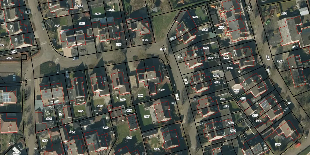 Platanenstraat 31 is gelegen op kadastraal perceel NLD03C3032. Deze kadastrale aanduiding is uniek en wordt gebruikt door het Kadaster om eigendomsrechten en andere zakelijke rechten vast te leggen. Het perceel maakt onderdeel uit van de kadastrale gemeente Nuland.