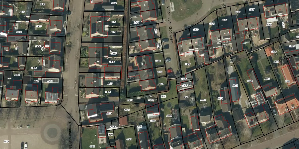 Het perceel waarop Vincent van Goghplein 13 staat heeft een oppervlakte van 185 m². Dit is een middelgroot perceel. De perceeloppervlakte wordt geregistreerd door het Kadaster. Gedetailleerde informatie over de maten van dit perceel kunt u vinden in het rapport Kadastrale kaart met maatvoering van Vincent van Goghplein 13.