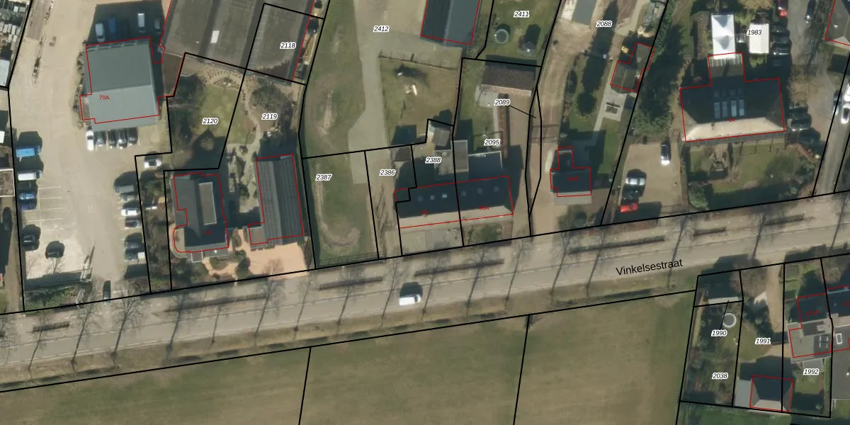 Vinkelsestraat 66 is gelegen op kadastraal perceel NLD03E2388. Deze kadastrale aanduiding is uniek en wordt gebruikt door het Kadaster om eigendomsrechten en andere zakelijke rechten vast te leggen. Het perceel maakt onderdeel uit van de kadastrale gemeente Nuland.