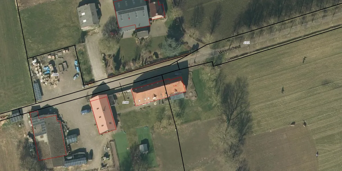 Het perceel waarop Weerscheut 9 staat heeft een oppervlakte van 4,2 ha. Dit is een zeer groot perceel. De perceeloppervlakte wordt geregistreerd door het Kadaster. Gedetailleerde informatie over de maten van dit perceel kunt u vinden in het rapport Kadastrale kaart met maatvoering van Weerscheut 9.