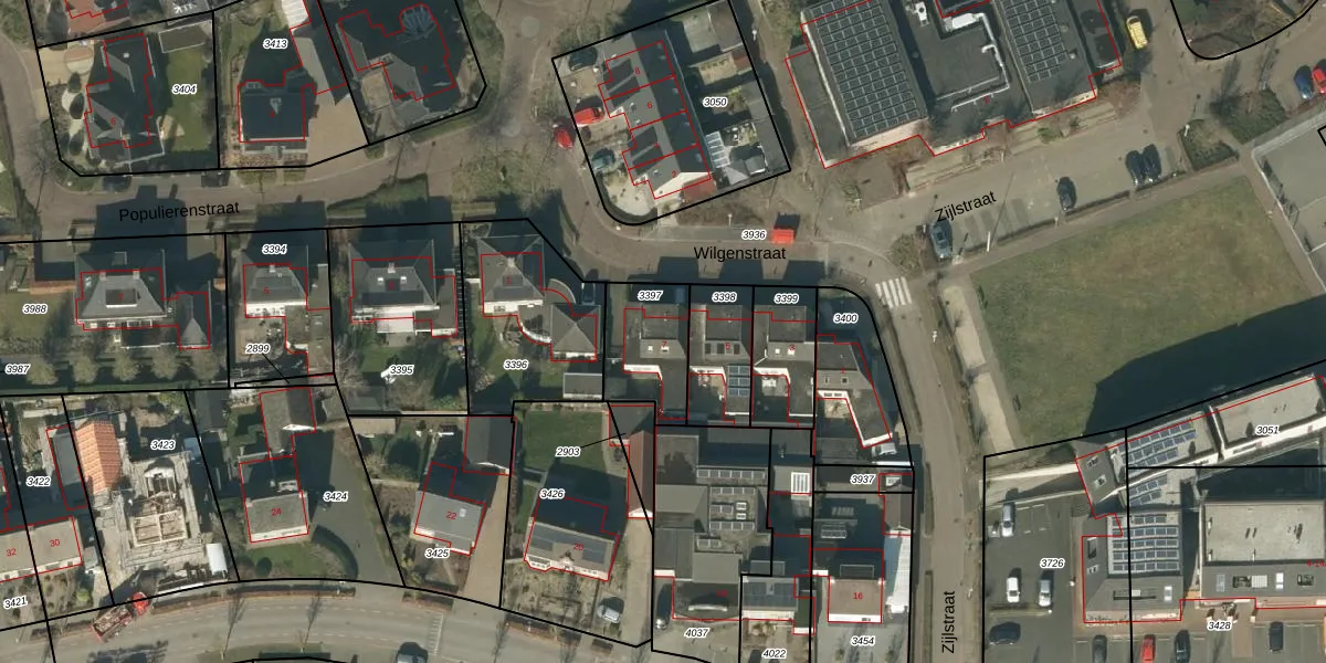 Gebruik de zoekbalk of klik op een perceel voor informatie over de adressen binnen dit perceel.