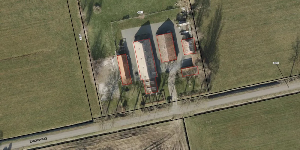 Het perceel waarop Zuiderweg 5 staat heeft een oppervlakte van 7785 m². Dit is een zeer groot perceel. De perceeloppervlakte wordt geregistreerd door het Kadaster. Gedetailleerde informatie over de maten van dit perceel kunt u vinden in het rapport Kadastrale kaart met maatvoering van Zuiderweg 5.