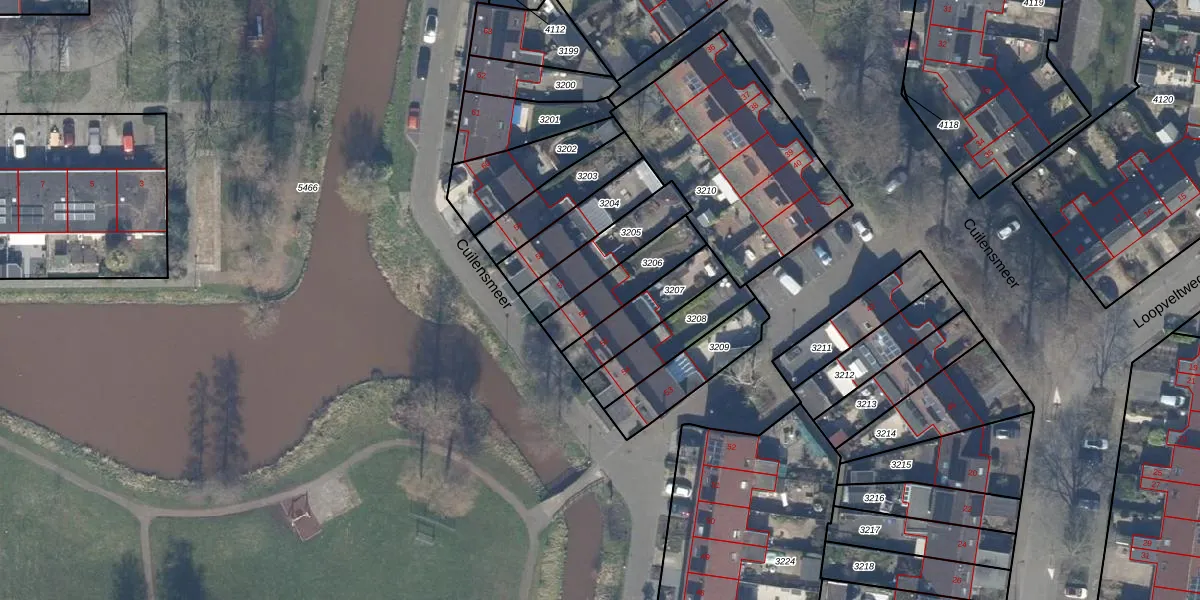 Cuilensmeer 56 is gelegen op kadastraal perceel VKV00E3206. Deze kadastrale aanduiding is uniek en wordt gebruikt door het Kadaster om eigendomsrechten en andere zakelijke rechten vast te leggen. Het perceel maakt onderdeel uit van de kadastrale gemeente Vinkeveen.