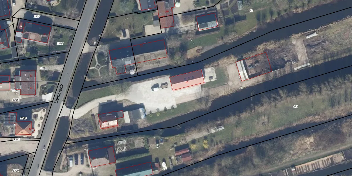 Het perceel waarop Demmerik 23 staat heeft een oppervlakte van 1,1 ha. Dit is een zeer groot perceel. De perceeloppervlakte wordt geregistreerd door het Kadaster. Gedetailleerde informatie over de maten van dit perceel kunt u vinden in het rapport Kadastrale kaart met maatvoering van Demmerik 23.
