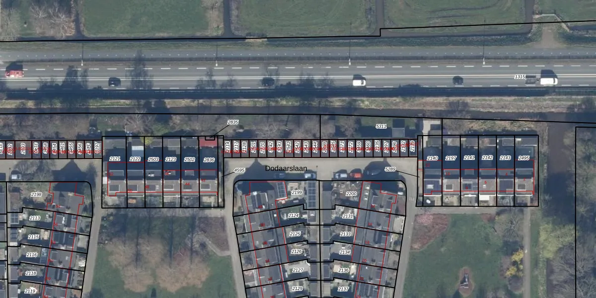 Dodaarslaan 42-G9 is gelegen op kadastraal perceel VKV00E2542. Deze kadastrale aanduiding is uniek en wordt gebruikt door het Kadaster om eigendomsrechten en andere zakelijke rechten vast te leggen. Het perceel maakt onderdeel uit van de kadastrale gemeente Vinkeveen.