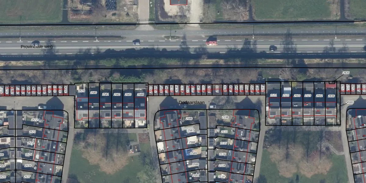 Dodaarslaan 82-G7 is gelegen op kadastraal perceel VKV00E3136. Deze kadastrale aanduiding is uniek en wordt gebruikt door het Kadaster om eigendomsrechten en andere zakelijke rechten vast te leggen. Het perceel maakt onderdeel uit van de kadastrale gemeente Vinkeveen.