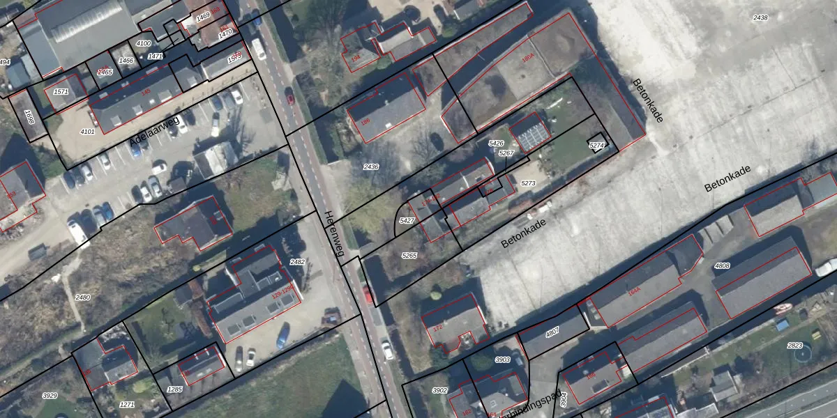 Het perceel waarop Herenweg 174 staat heeft een oppervlakte van 64 m². Dit is een klein perceel. De perceeloppervlakte wordt geregistreerd door het Kadaster. Gedetailleerde informatie over de maten van dit perceel kunt u vinden in het rapport Kadastrale kaart met maatvoering van Herenweg 174.