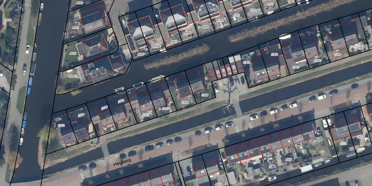Heulweg 38 is gelegen op kadastraal perceel VKV00E2309. Deze kadastrale aanduiding is uniek en wordt gebruikt door het Kadaster om eigendomsrechten en andere zakelijke rechten vast te leggen. Het perceel maakt onderdeel uit van de kadastrale gemeente Vinkeveen.