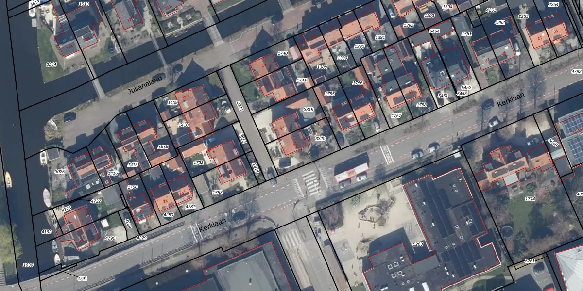 Kerklaan 61 is gelegen op kadastraal perceel VKV00E3320. Deze kadastrale aanduiding is uniek en wordt gebruikt door het Kadaster om eigendomsrechten en andere zakelijke rechten vast te leggen. Het perceel maakt onderdeel uit van de kadastrale gemeente Vinkeveen.