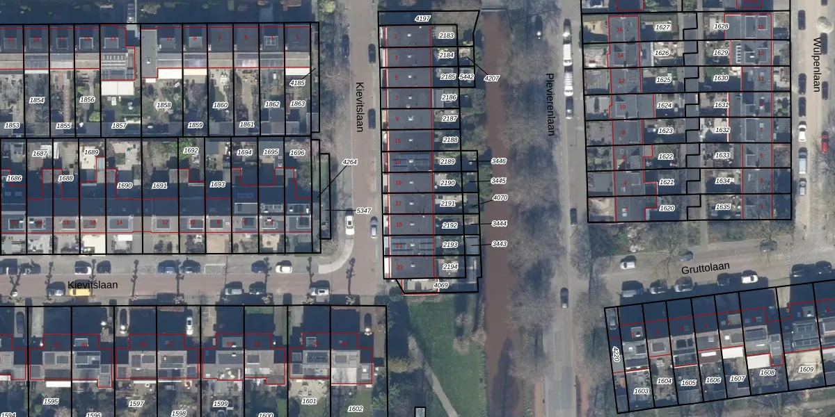 Het perceel waarop Kievitslaan 17 staat heeft een oppervlakte van 96 m². Dit is een klein perceel. De perceeloppervlakte wordt geregistreerd door het Kadaster. Gedetailleerde informatie over de maten van dit perceel kunt u vinden in het rapport Kadastrale kaart met maatvoering van Kievitslaan 17.