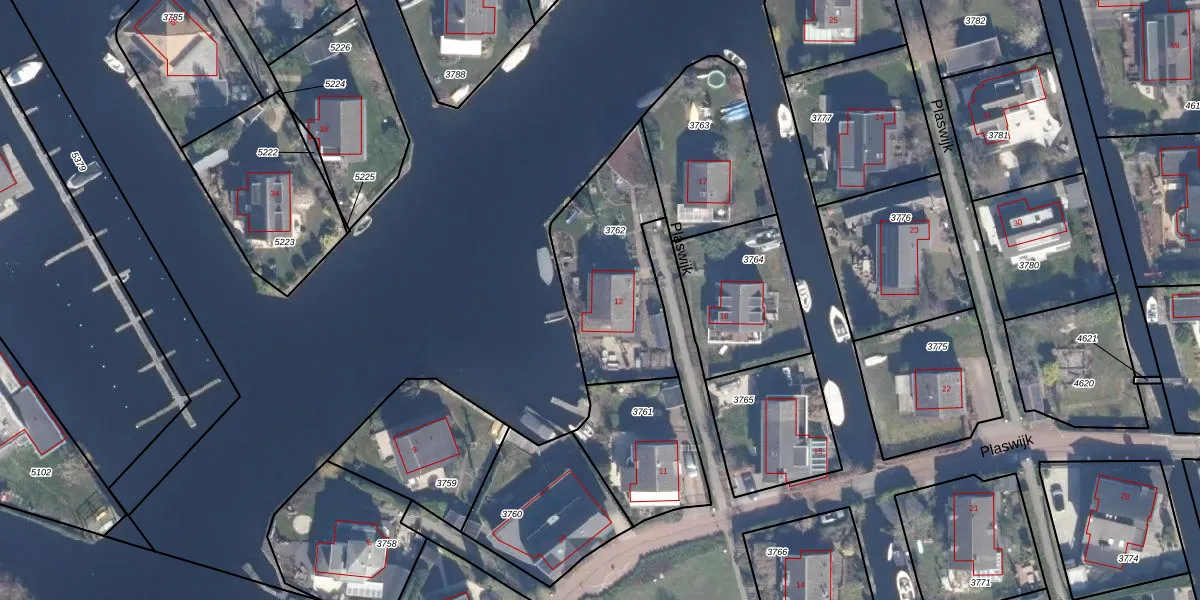 Plaswijk 12 is gelegen op kadastraal perceel VKV00A3762. Deze kadastrale aanduiding is uniek en wordt gebruikt door het Kadaster om eigendomsrechten en andere zakelijke rechten vast te leggen. Het perceel maakt onderdeel uit van de kadastrale gemeente Vinkeveen.