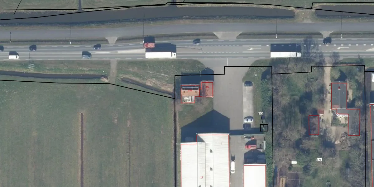 Het perceel waarop Provinciale weg 15-A staat heeft een oppervlakte van 8046 m². Dit is een zeer groot perceel. De perceeloppervlakte wordt geregistreerd door het Kadaster. Gedetailleerde informatie over de maten van dit perceel kunt u vinden in het rapport Kadastrale kaart met maatvoering van Provinciale weg 15-A.