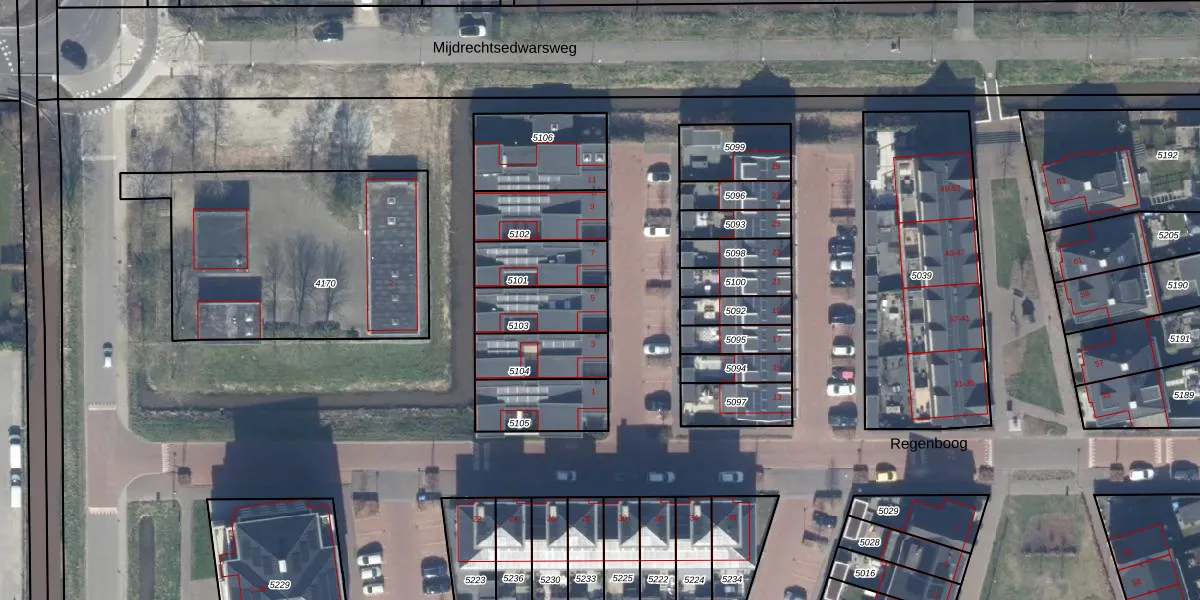 Het perceel waarop Regenboog 5 staat heeft een oppervlakte van 170 m². Dit is een middelgroot perceel. De perceeloppervlakte wordt geregistreerd door het Kadaster. Gedetailleerde informatie over de maten van dit perceel kunt u vinden in het rapport Kadastrale kaart met maatvoering van Regenboog 5.