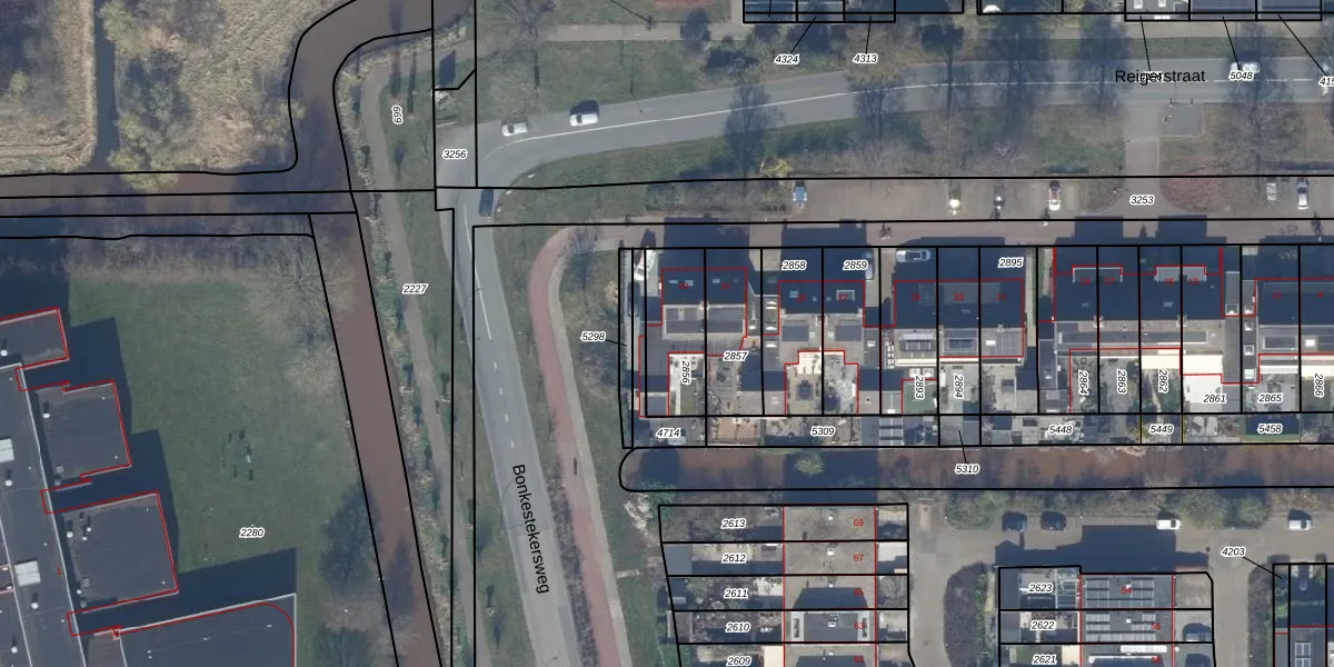 Reigerstraat 33 is gelegen op kadastraal perceel VKV00E2856. Deze kadastrale aanduiding is uniek en wordt gebruikt door het Kadaster om eigendomsrechten en andere zakelijke rechten vast te leggen. Het perceel maakt onderdeel uit van de kadastrale gemeente Vinkeveen.