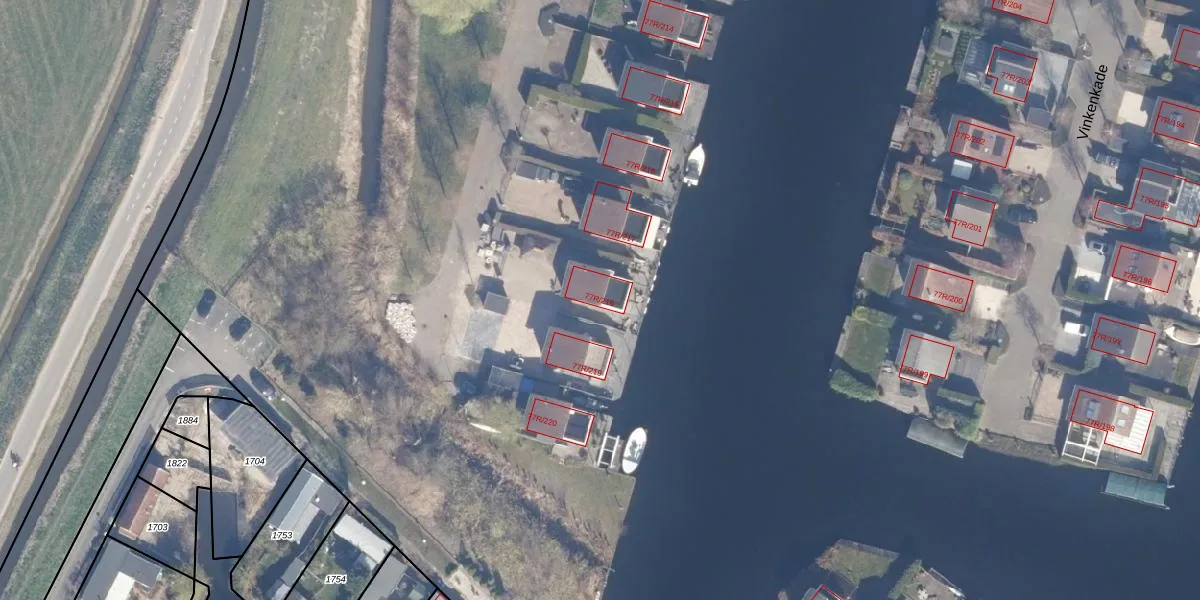 Vinkenkade 77-R-218 is gelegen op kadastraal perceel VKV00H2079. Deze kadastrale aanduiding is uniek en wordt gebruikt door het Kadaster om eigendomsrechten en andere zakelijke rechten vast te leggen. Het perceel maakt onderdeel uit van de kadastrale gemeente Vinkeveen.