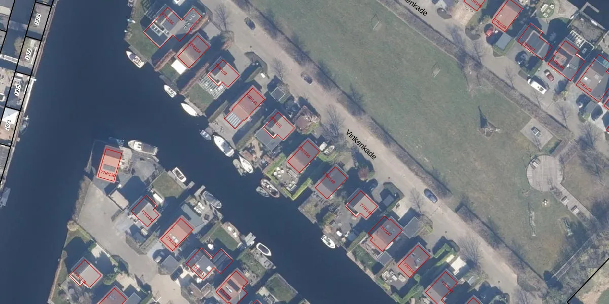 Vinkenkade 77-R-150 is gelegen op kadastraal perceel VKV00H2079. Deze kadastrale aanduiding is uniek en wordt gebruikt door het Kadaster om eigendomsrechten en andere zakelijke rechten vast te leggen. Het perceel maakt onderdeel uit van de kadastrale gemeente Vinkeveen.