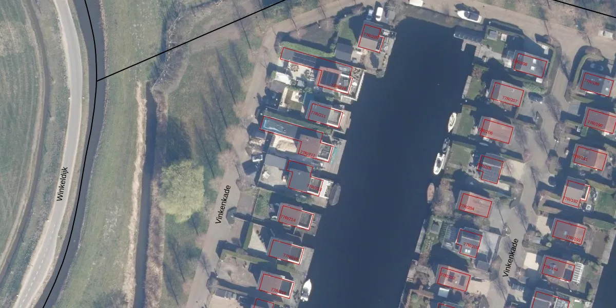 Vinkenkade 77-R-212 is gelegen op kadastraal perceel VKV00H2079. Deze kadastrale aanduiding is uniek en wordt gebruikt door het Kadaster om eigendomsrechten en andere zakelijke rechten vast te leggen. Het perceel maakt onderdeel uit van de kadastrale gemeente Vinkeveen.