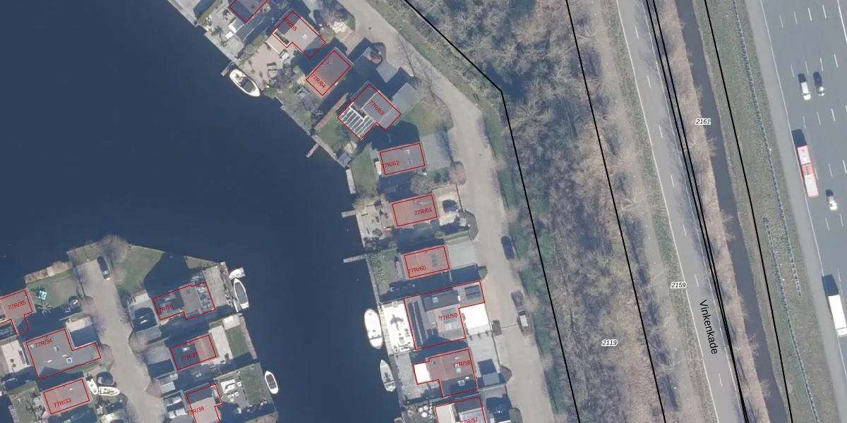 Vinkenkade 77-R-61 is gelegen op kadastraal perceel VKV00H2079. Deze kadastrale aanduiding is uniek en wordt gebruikt door het Kadaster om eigendomsrechten en andere zakelijke rechten vast te leggen. Het perceel maakt onderdeel uit van de kadastrale gemeente Vinkeveen.