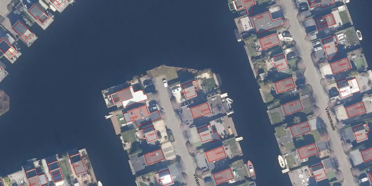 Vinkenkade 77-R-12 is gelegen op kadastraal perceel VKV00H2079. Deze kadastrale aanduiding is uniek en wordt gebruikt door het Kadaster om eigendomsrechten en andere zakelijke rechten vast te leggen. Het perceel maakt onderdeel uit van de kadastrale gemeente Vinkeveen.