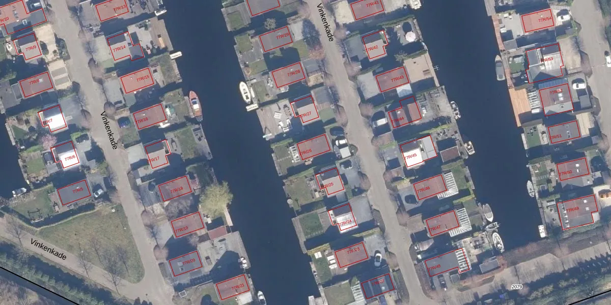 Vinkenkade 77-R-26 is gelegen op kadastraal perceel VKV00H2079. Deze kadastrale aanduiding is uniek en wordt gebruikt door het Kadaster om eigendomsrechten en andere zakelijke rechten vast te leggen. Het perceel maakt onderdeel uit van de kadastrale gemeente Vinkeveen.