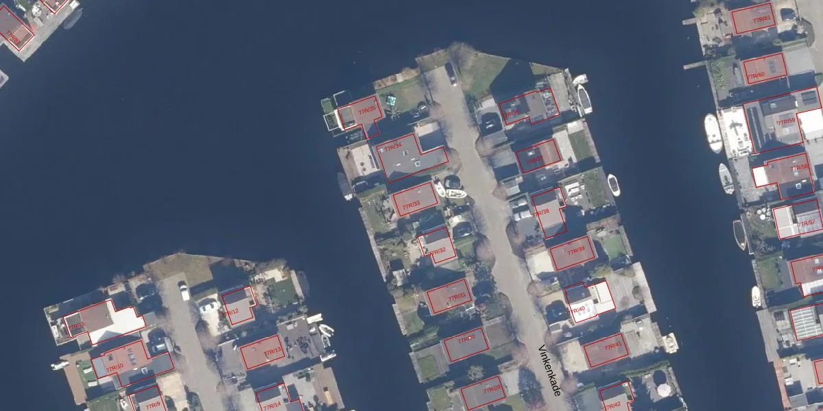 Vinkenkade 77-R-33 is gelegen op kadastraal perceel VKV00H2079. Deze kadastrale aanduiding is uniek en wordt gebruikt door het Kadaster om eigendomsrechten en andere zakelijke rechten vast te leggen. Het perceel maakt onderdeel uit van de kadastrale gemeente Vinkeveen.