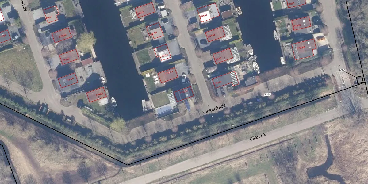 Vinkenkade 77-R-22 is gelegen op kadastraal perceel VKV00H2079. Deze kadastrale aanduiding is uniek en wordt gebruikt door het Kadaster om eigendomsrechten en andere zakelijke rechten vast te leggen. Het perceel maakt onderdeel uit van de kadastrale gemeente Vinkeveen.