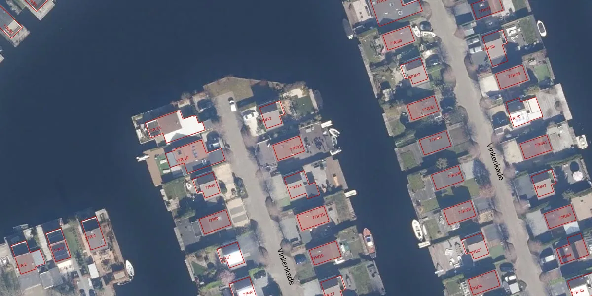 Vinkenkade 77-R-13 is gelegen op kadastraal perceel VKV00H2079. Deze kadastrale aanduiding is uniek en wordt gebruikt door het Kadaster om eigendomsrechten en andere zakelijke rechten vast te leggen. Het perceel maakt onderdeel uit van de kadastrale gemeente Vinkeveen.