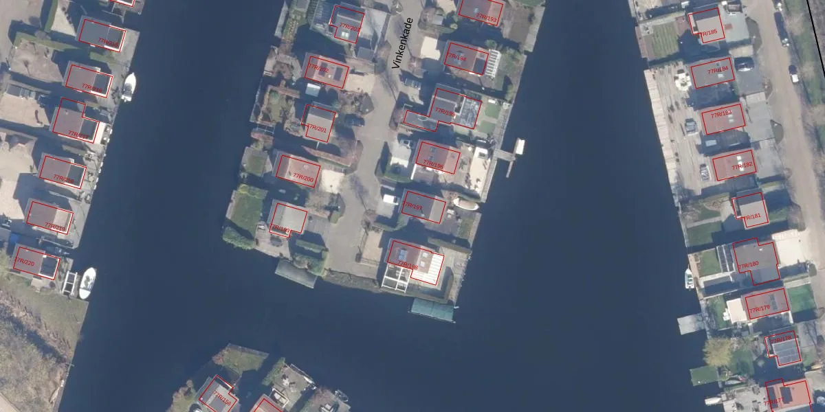 Het adres Vinkenkade 77-R-197 bevindt zich in de plaats Vinkeveen, in de gemeente Vinkeveen en de provincie Utrecht. Het perceel waarop het adres gelegen is heeft een oppervlakte van 18,0 ha. Het verblijfsobject is met 72 m² relatief klein. Het adres is klein vergeleken met andere objecten in de straat. Het grootste object in de straat heeft een oppervlakte van 1909 m², het kleinste is 11 m² groot. In het jaar 2002 is het pand waarin Vinkenkade 77-R-197 ligt gebouwd. Dat is relatief recent: de meeste gebouwen in Nederland zijn gebouwd in de periode 1965-1984. Vergeleken met de andere panden in de straat is dit gebouw nieuw. Het vroegste bouwjaar is er 1900 en het laatste is 2024. De volgende gebruiksdoelen zijn geregistreerd voor dit adres: 'logiesfunctie'.