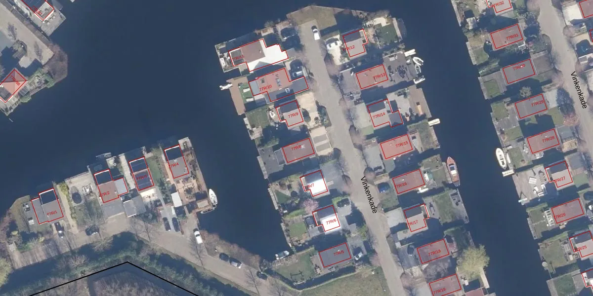 Vinkenkade 77-R-8 is gelegen op kadastraal perceel VKV00H2079. Deze kadastrale aanduiding is uniek en wordt gebruikt door het Kadaster om eigendomsrechten en andere zakelijke rechten vast te leggen. Het perceel maakt onderdeel uit van de kadastrale gemeente Vinkeveen.