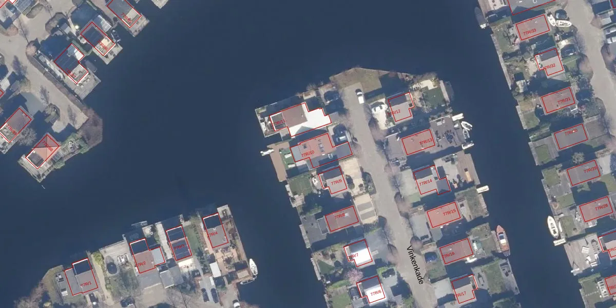 Vinkenkade 77-R-10 is gelegen op kadastraal perceel VKV00H2079. Deze kadastrale aanduiding is uniek en wordt gebruikt door het Kadaster om eigendomsrechten en andere zakelijke rechten vast te leggen. Het perceel maakt onderdeel uit van de kadastrale gemeente Vinkeveen.