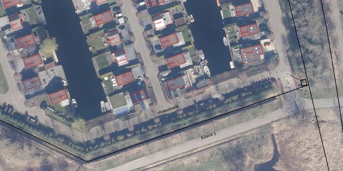 Vinkenkade 77-R-48 is gelegen op kadastraal perceel VKV00H2079. Deze kadastrale aanduiding is uniek en wordt gebruikt door het Kadaster om eigendomsrechten en andere zakelijke rechten vast te leggen. Het perceel maakt onderdeel uit van de kadastrale gemeente Vinkeveen.