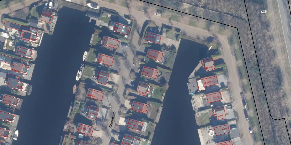 Vinkenkade 77-R-191 is gelegen op kadastraal perceel VKV00H2079. Deze kadastrale aanduiding is uniek en wordt gebruikt door het Kadaster om eigendomsrechten en andere zakelijke rechten vast te leggen. Het perceel maakt onderdeel uit van de kadastrale gemeente Vinkeveen.