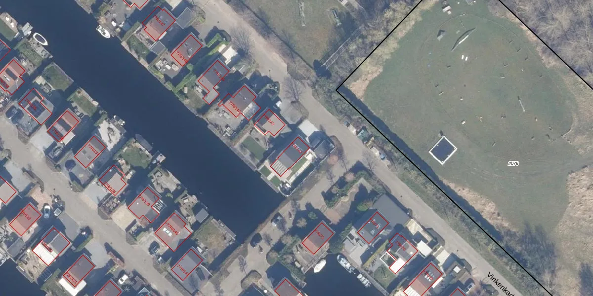 Vinkenkade 77-R-142 is gelegen op kadastraal perceel VKV00H2079. Deze kadastrale aanduiding is uniek en wordt gebruikt door het Kadaster om eigendomsrechten en andere zakelijke rechten vast te leggen. Het perceel maakt onderdeel uit van de kadastrale gemeente Vinkeveen.