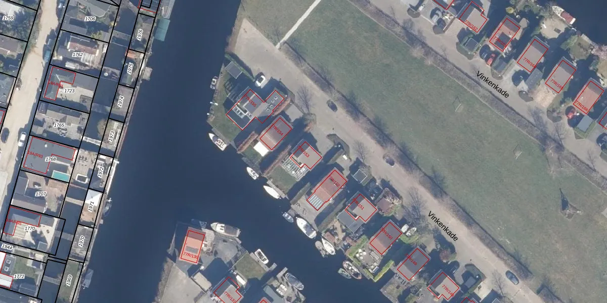 Vinkenkade 77-R-153 is gelegen op kadastraal perceel VKV00H2079. Deze kadastrale aanduiding is uniek en wordt gebruikt door het Kadaster om eigendomsrechten en andere zakelijke rechten vast te leggen. Het perceel maakt onderdeel uit van de kadastrale gemeente Vinkeveen.