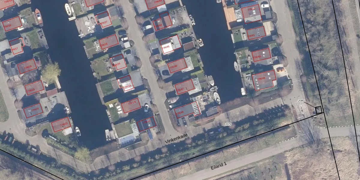 Vinkenkade 77-R-47 is gelegen op kadastraal perceel VKV00H2079. Deze kadastrale aanduiding is uniek en wordt gebruikt door het Kadaster om eigendomsrechten en andere zakelijke rechten vast te leggen. Het perceel maakt onderdeel uit van de kadastrale gemeente Vinkeveen.