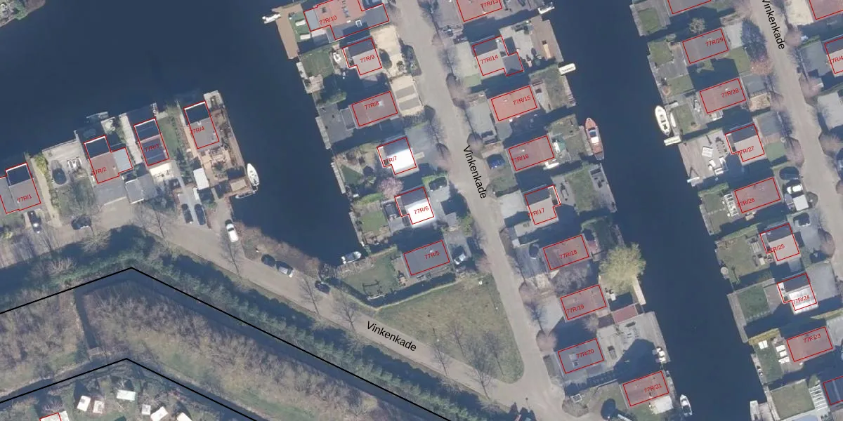 Vinkenkade 77-R-6 is gelegen op kadastraal perceel VKV00H2079. Deze kadastrale aanduiding is uniek en wordt gebruikt door het Kadaster om eigendomsrechten en andere zakelijke rechten vast te leggen. Het perceel maakt onderdeel uit van de kadastrale gemeente Vinkeveen.