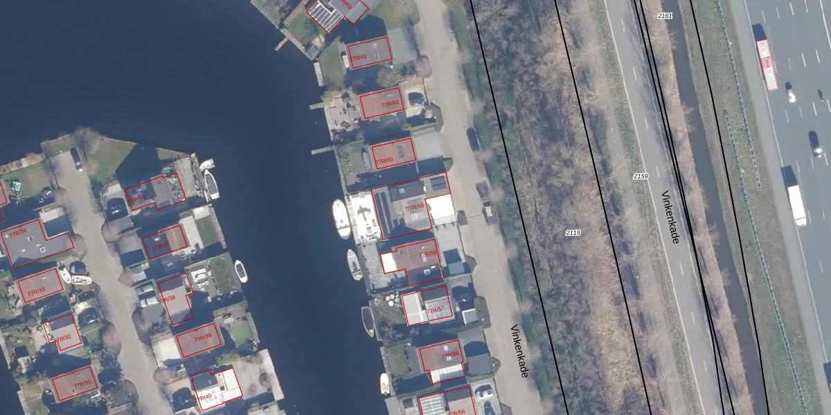 Vinkenkade 77-R-59 is gelegen op kadastraal perceel VKV00H2079. Deze kadastrale aanduiding is uniek en wordt gebruikt door het Kadaster om eigendomsrechten en andere zakelijke rechten vast te leggen. Het perceel maakt onderdeel uit van de kadastrale gemeente Vinkeveen.