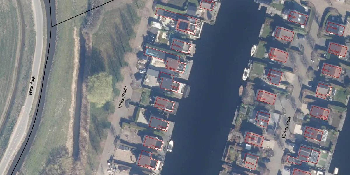 Vinkenkade 77-R-213 is gelegen op kadastraal perceel VKV00H2079. Deze kadastrale aanduiding is uniek en wordt gebruikt door het Kadaster om eigendomsrechten en andere zakelijke rechten vast te leggen. Het perceel maakt onderdeel uit van de kadastrale gemeente Vinkeveen.