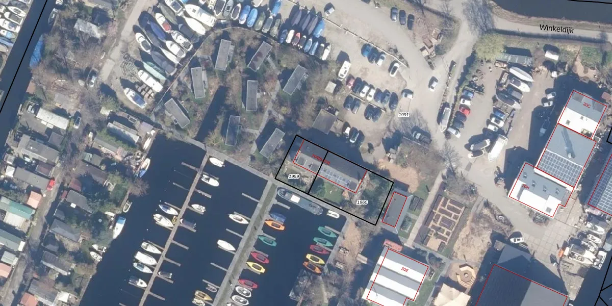 Winkeldijk 20-B is gelegen op kadastraal perceel VKV00H1959. Deze kadastrale aanduiding is uniek en wordt gebruikt door het Kadaster om eigendomsrechten en andere zakelijke rechten vast te leggen. Het perceel maakt onderdeel uit van de kadastrale gemeente Vinkeveen.