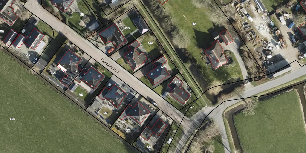 Haringhuizen 13 is gelegen op kadastraal perceel GKK01G989. Deze kadastrale aanduiding is uniek en wordt gebruikt door het Kadaster om eigendomsrechten en andere zakelijke rechten vast te leggen. Het perceel maakt onderdeel uit van de kadastrale gemeente Grijpskerk.