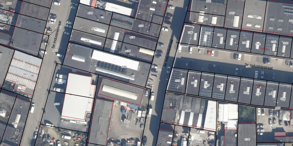 4e Industriestraat 25 is gelegen op kadastraal perceel VDG00D4192. Deze kadastrale aanduiding is uniek en wordt gebruikt door het Kadaster om eigendomsrechten en andere zakelijke rechten vast te leggen. Het perceel maakt onderdeel uit van de kadastrale gemeente Vlaardingen.