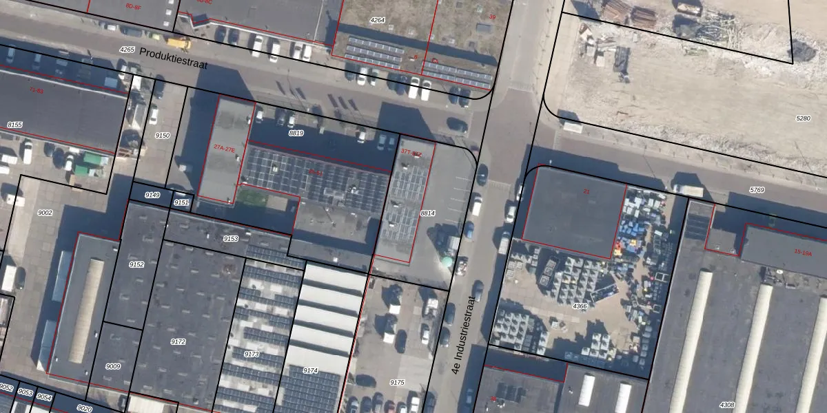 Het perceel waarop 4e Industriestraat 37-W staat heeft een oppervlakte van 687 m². Dit is een groot perceel. De perceeloppervlakte wordt geregistreerd door het Kadaster. Gedetailleerde informatie over de maten van dit perceel kunt u vinden in het rapport Kadastrale kaart met maatvoering van 4e Industriestraat 37-W.