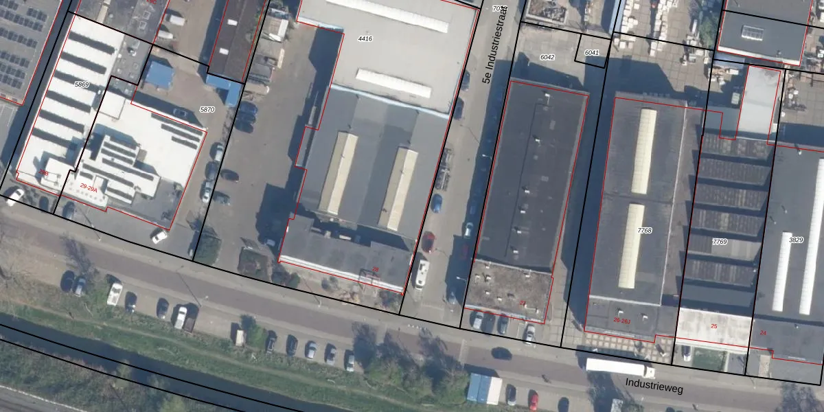 Het perceel waarop 5e Industriestraat 3-A staat heeft een oppervlakte van 4043 m². Dit is een zeer groot perceel. De perceeloppervlakte wordt geregistreerd door het Kadaster. Gedetailleerde informatie over de maten van dit perceel kunt u vinden in het rapport Kadastrale kaart met maatvoering van 5e Industriestraat 3-A.
