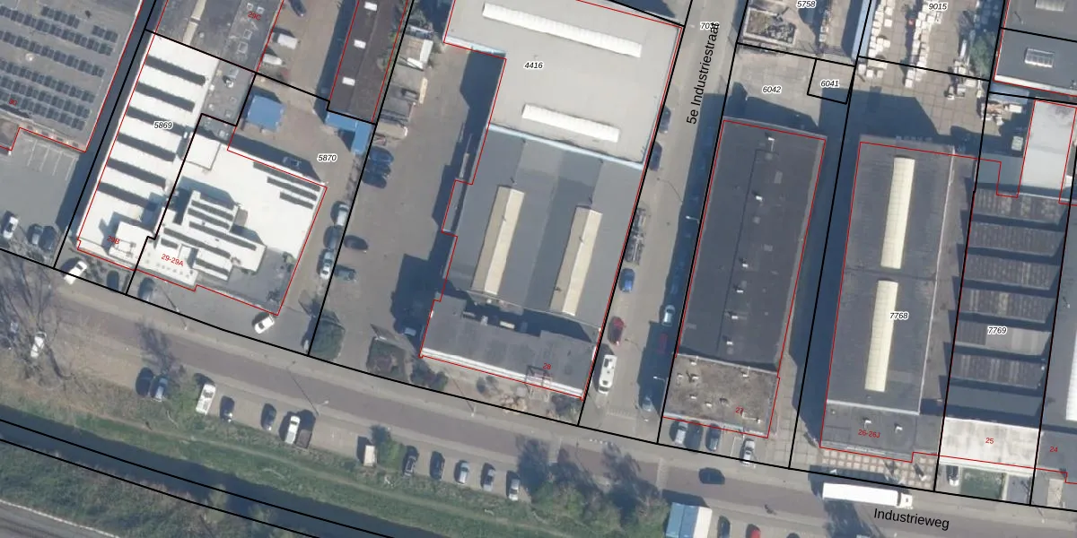 Het perceel waarop 5e Industriestraat 3-C staat heeft een oppervlakte van 4043 m². Dit is een zeer groot perceel. De perceeloppervlakte wordt geregistreerd door het Kadaster. Gedetailleerde informatie over de maten van dit perceel kunt u vinden in het rapport Kadastrale kaart met maatvoering van 5e Industriestraat 3-C.