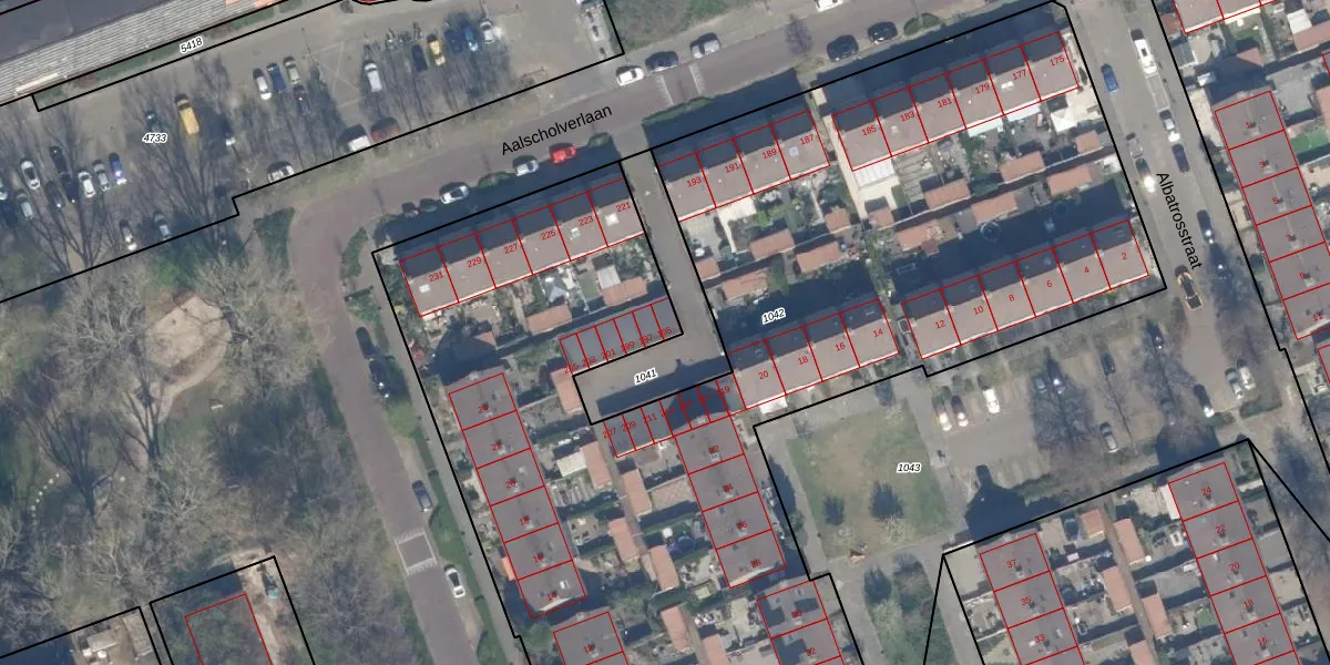 Aalscholverlaan 195 is gelegen op kadastraal perceel VDG00K1042. Deze kadastrale aanduiding is uniek en wordt gebruikt door het Kadaster om eigendomsrechten en andere zakelijke rechten vast te leggen. Het perceel maakt onderdeel uit van de kadastrale gemeente Vlaardingen.