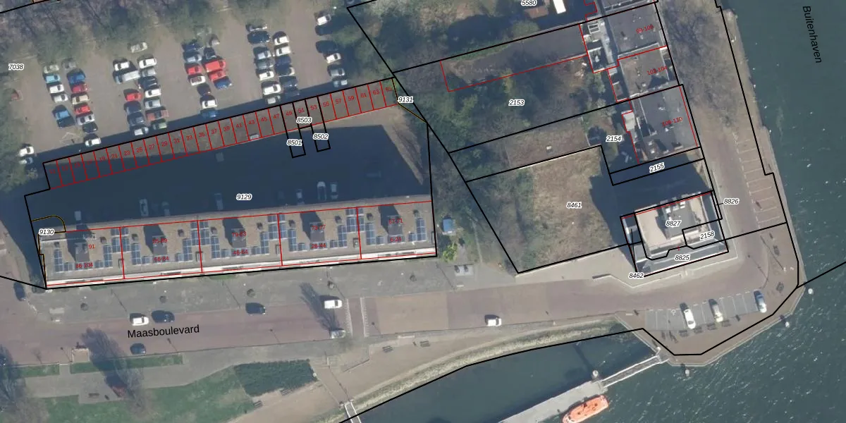 Het adres ligt op het perceel VDG00-D-9129, dat zich in de kadastrale gemeente Vlaardingen bevindt. Het perceel is met 3283 m² relatief groot. Het gemiddelde ligt in de kadastrale gemeente Vlaardingen op 1372,24 m². Het grootste perceel in de kadastrale gemeente is 1,02 km². Het kleinste perceel heeft een oppervlakte van 0 m². Op het perceel zijn 88 adressen aanwezig. De huidige grenzen van het perceel zijn digitaal in de Basisregistratie Kadaster (BRK) geregistreerd op 28-04-2022.