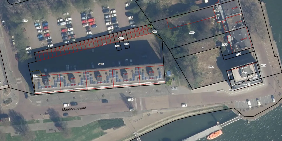 Het adres ligt op het perceel VDG00-D-9129, dat zich in de kadastrale gemeente Vlaardingen bevindt. Het perceel is met 3283 m² relatief groot. Het gemiddelde ligt in de kadastrale gemeente Vlaardingen op 1372,24 m². Het grootste perceel in de kadastrale gemeente is 1,02 km². Het kleinste perceel heeft een oppervlakte van 0 m². Op het perceel liggen in totaal 88 adressen. De huidige grenzen van het perceel zijn digitaal in de Basisregistratie Kadaster (BRK) geregistreerd op 28-04-2022.
