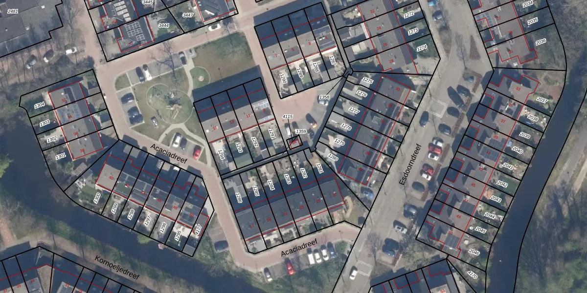 Het perceel waarop Acaciadreef 9-A staat heeft een oppervlakte van 16 m². Dit is een klein perceel. De perceeloppervlakte wordt geregistreerd door het Kadaster. Gedetailleerde informatie over de maten van dit perceel kunt u vinden in het rapport Kadastrale kaart met maatvoering van Acaciadreef 9-A.