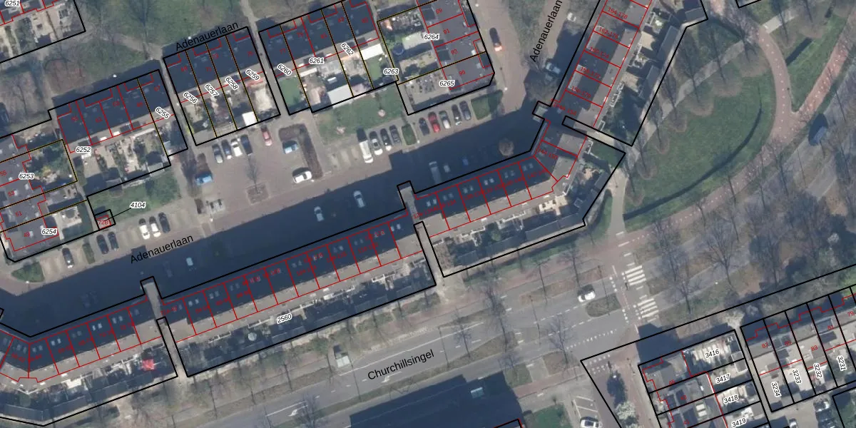Het perceel waarop Adenauerlaan 126 staat heeft een oppervlakte van 6460 m². Dit is een zeer groot perceel. De perceeloppervlakte wordt geregistreerd door het Kadaster. Gedetailleerde informatie over de maten van dit perceel kunt u vinden in het rapport Kadastrale kaart met maatvoering van Adenauerlaan 126.